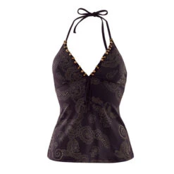 Tankini en microfibre. ImprimĂ© au motif “arabesque“. Liens tressĂ©s avec perles mordorĂ©es. Coques amovibles. MĂ©daillon BB. A nouer autour du cou. A associer avec le bas FESTIVE. Disponible du 36 au 46 Matière principale : 81% Polyamide, 19% Elasthanne – Doublure : 100% Polyester
